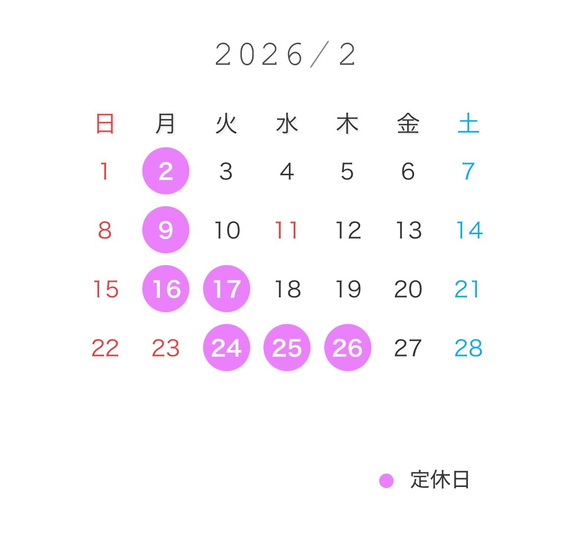 1月の定休日をお知らせいたします。