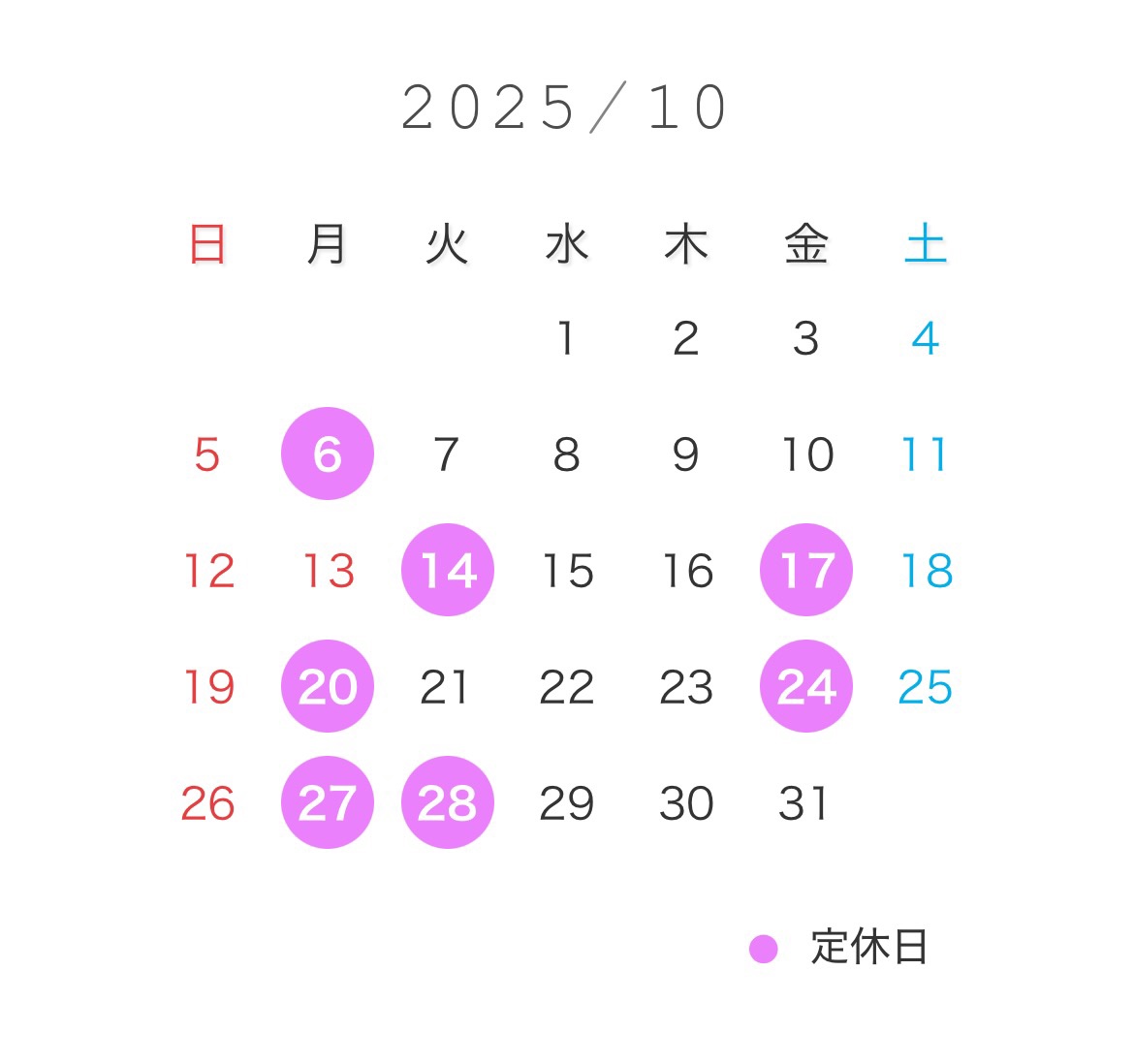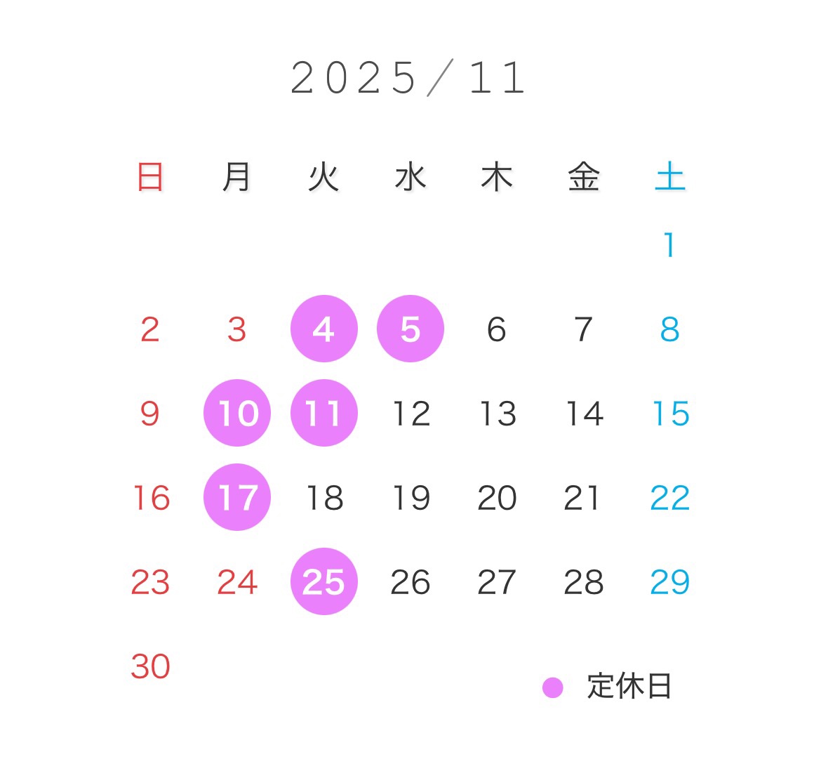 11月の営業カレンダーもお知らせします!